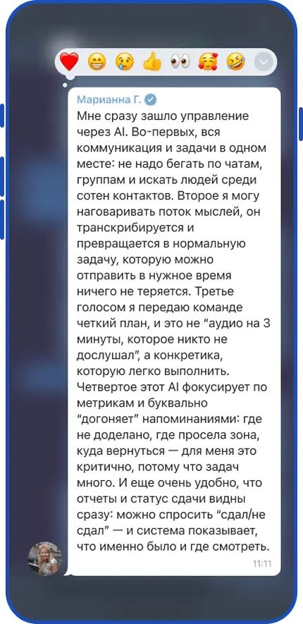 контроля, аналитики, ритма, скорости решений, управленческой ясности.