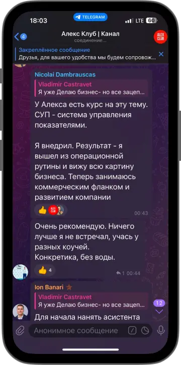 Появилась ясность. Благодаря знаниям и энергетике Алекса, есть уверенность и понимание, как строить бизнес.