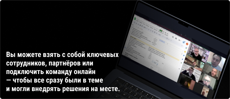 - Включает работу с Алексом, участие вашей команды и доступ к материалам